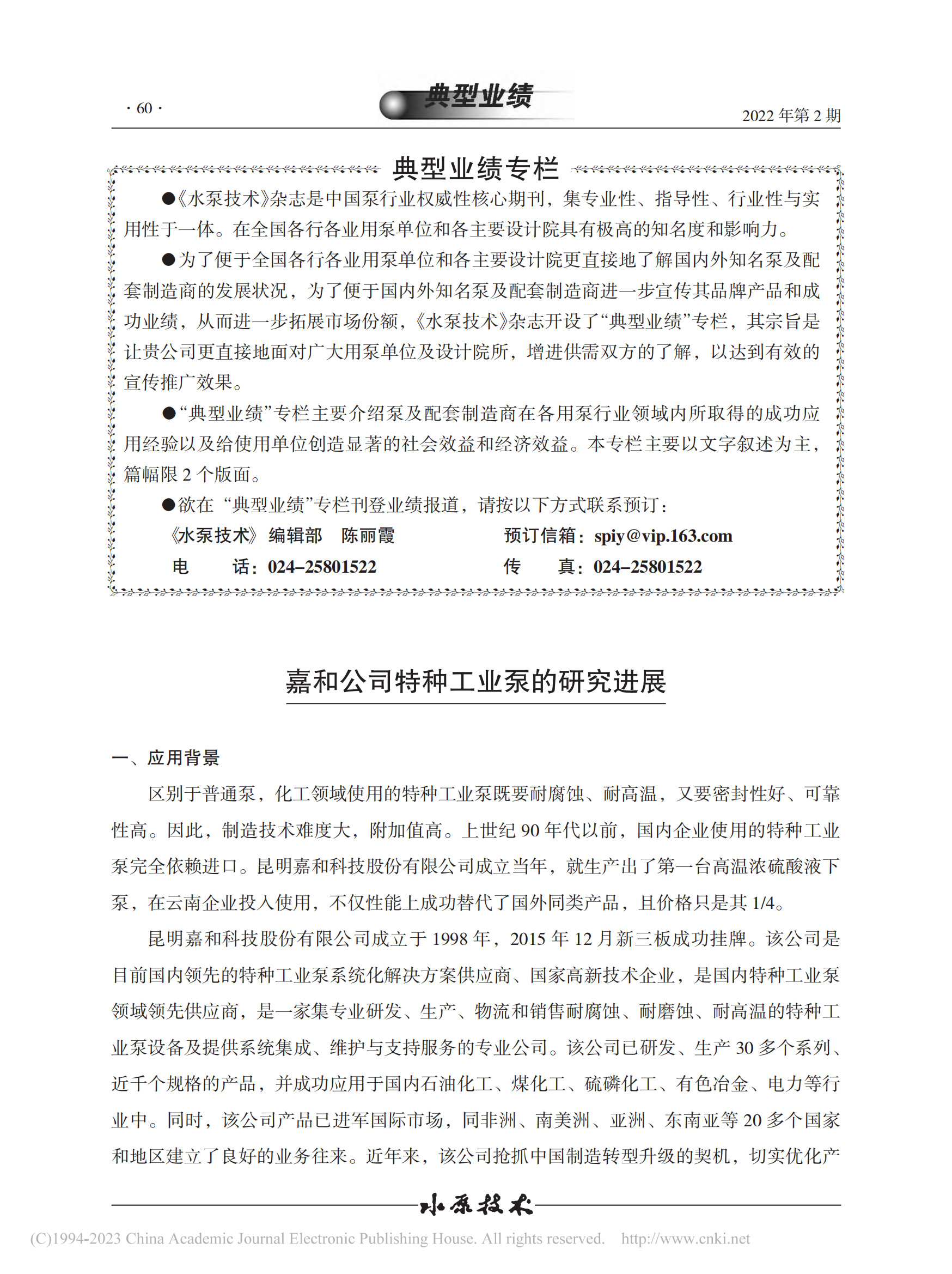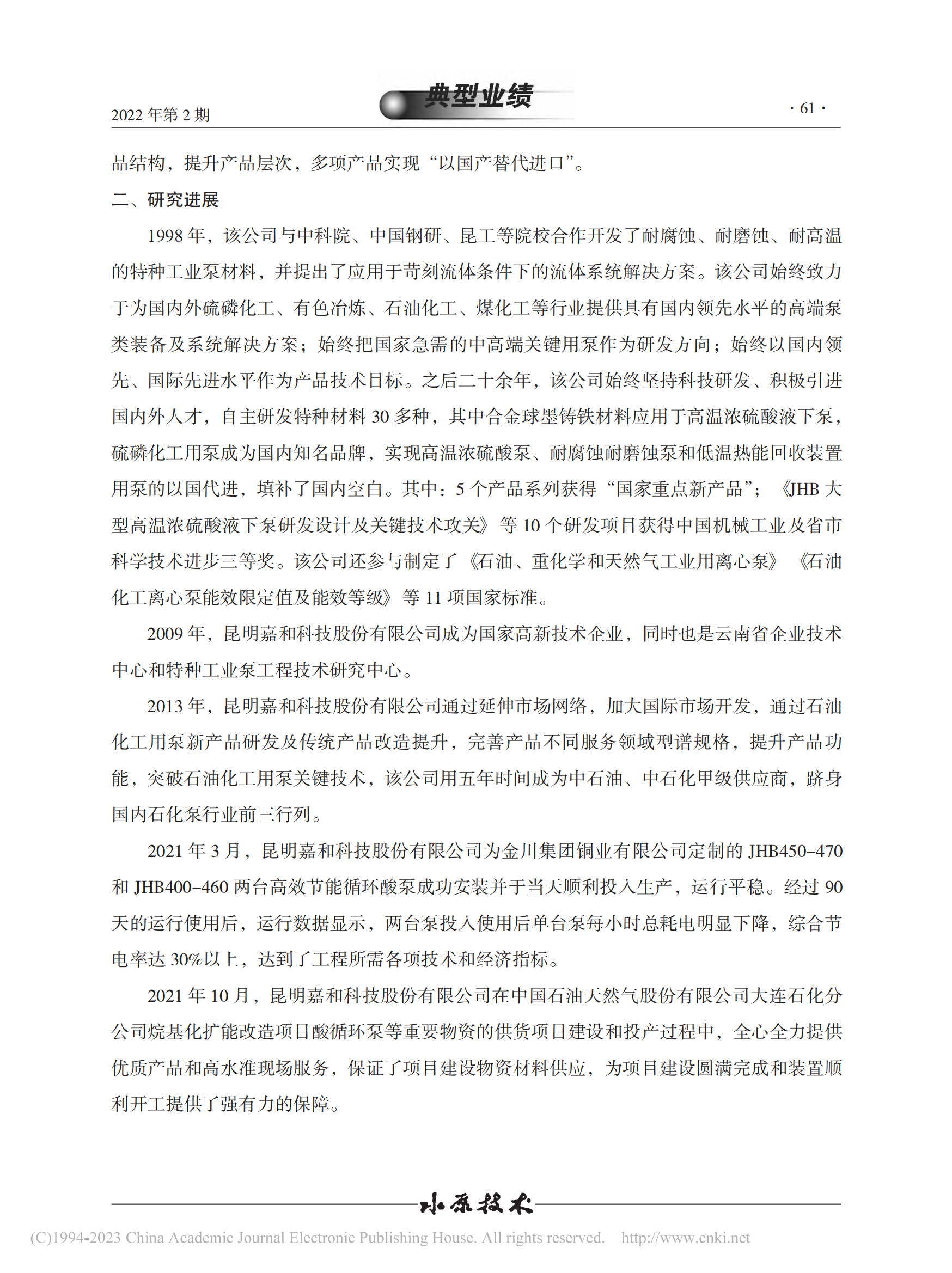 嘉和公司特種工業泵的研究進展